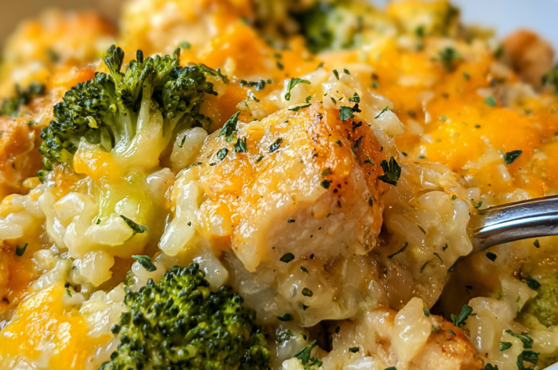 A Comforting Cheesy Chicken Broccoli Rice Casserole