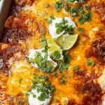 These enchiladas are perfect for entertaining. Prepare a large tray, keep them warm in the oven, and serve family-style with plenty of sides and toppings. Set up a toppings bar with sour cream, guacamole, chopped cilantro, pickled onions, and hot sauces so guests can customize their plates. Don’t forget to pair the meal with a pitcher of margaritas or icy cold cervezas for the full experience.