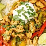 These can really elevate your chicken fajita rice bowl — shredded cheese, sour cream, guacamole, fresh cilantro, salsa, sliced avocado, or a squeeze of lime juice.