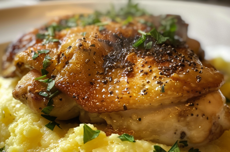 There is a specific kind of magic that happens when bright, sharp lemon meets rich, savory chicken fat. Lemon Herb Roasted Chicken Thighs with Creamy Polenta isn’t just dinner; it’s a masterclass in contrast. You get the aggressive crunch of well-rendered skin giving way to succulent meat, all resting on a pillow of cornmeal that soaks up every drop of the pan drippings.