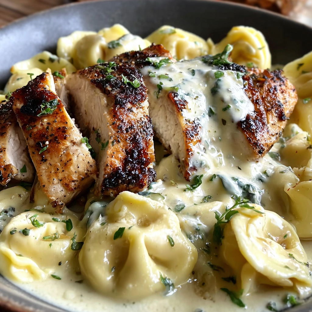 Creamy Asiago Tortellini Alfredo with Grilled Chicken