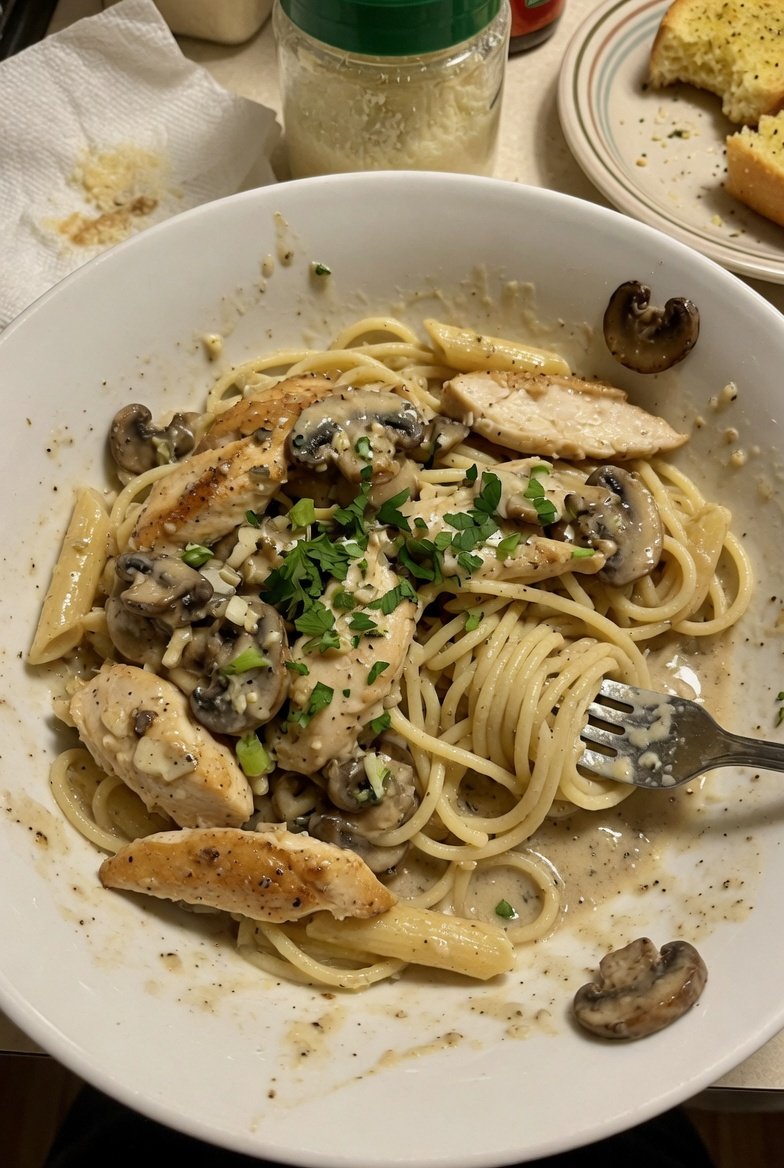 Tender chicken, golden mushrooms, and a velvety garlic-Parmesan sauce — this 30-minute weeknight wonder tastes like it simmered all day.