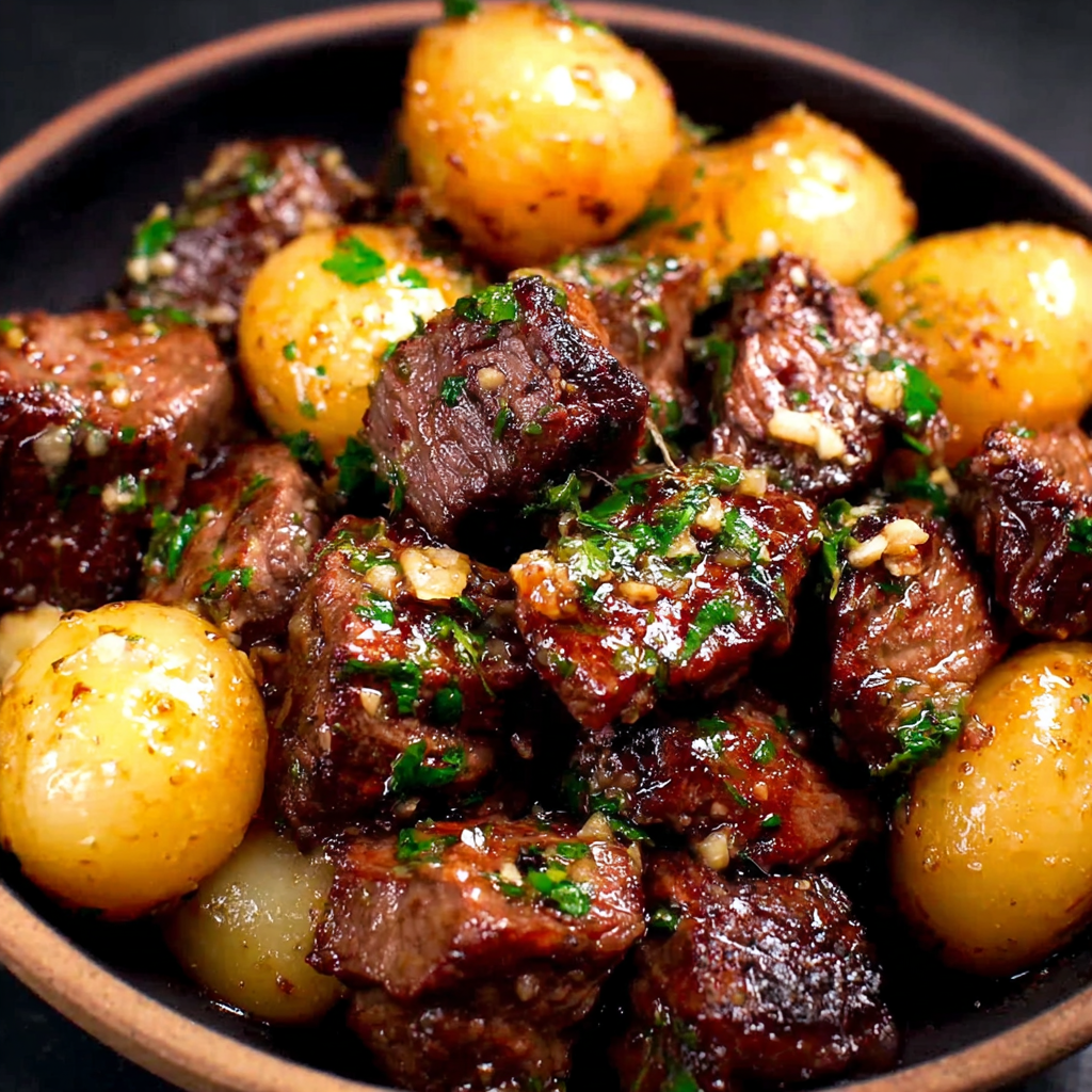 Crockpot Garlic Butter Beef Bites with Potatoes