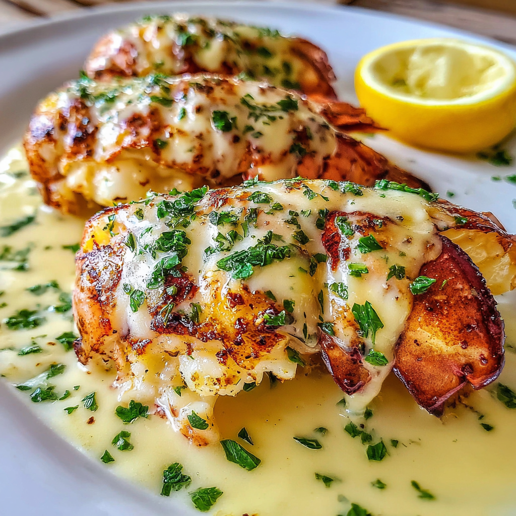 Presenting creamy garlic butter lobster tails can be as luxurious as the dish itself. Pair them with elegant sides such as garlic mashed potatoes or a simple green salad tossed with lemon vinaigrette. A side of crusty bread is great for mopping up the delicious sauce. To elevate your meal, consider pairing this dish with a glass of chilled white wine, such as a buttery Chardonnay, that complements the richness of the lobster and enhances your overall dining experience.