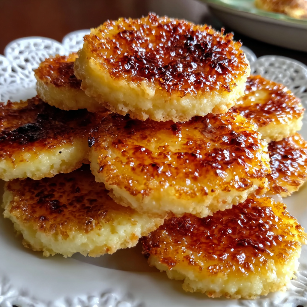 These cookies should be crispy on the outside and soft on the inside, reminiscent of traditional crème brûlée with a satisfying crunch.
