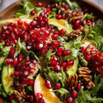 The combination of crunchy greens, juicy pomegranate seeds, and creamy feta creates a perfect balance of flavors, while the dressing ties it all together with a delightful sweetness. Perfect as a side dish or a light main, this salad is both elegant and easy to prepare.