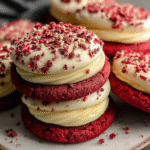 Topped with a rich cream cheese frosting, they carry that signature tang that makes red velvet desserts irresistibly delicious. Perfect for any celebration or just a sweet indulgence, these cookies are sure to impress both family and friends.