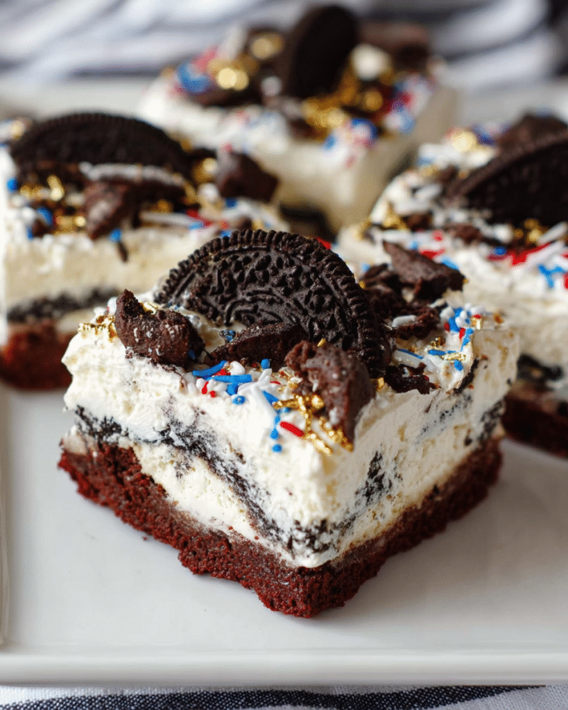 Herby No Bake Fireworks Oreo Cheesecake Bars for busy nights