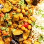 Eggplant curry pairs wonderfully with fluffy basmati rice or warm naan bread. For a low-carb option, try cauliflower rice or steamed vegetables.