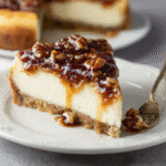 - Drizzle the pecan mixture on top of the cheesecake, creating a swirl if desired.