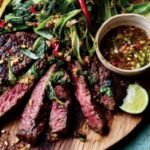 This steak recipe is a unique twist on classic grilled beef. The marinade combines lemongrass, ginger, coconut milk, soy sauce, and a hint of lime juice to create an extraordinary depth of flavor. The result is a steak that’s juicy, aromatic, and perfectly balanced with creamy, citrusy, and savory notes.