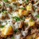 These ingredients are basic but powerful when combined. The potatoes absorb the beef’s flavors, while the cheese brings creaminess and indulgence.