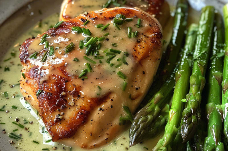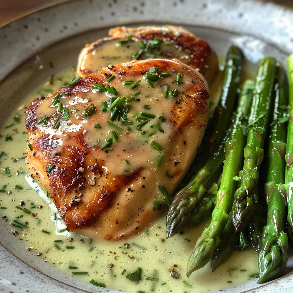 - Serve with asparagus, drizzling the sauce over the chicken.