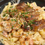 The blackening technique not only adds a beautiful crust to the steak and shrimp but also infuses them with a depth of flavor that’s hard to resist. This recipe strikes a perfect balance between a creamy sauce and the smoky spices, creating a delightful experience for your taste buds.