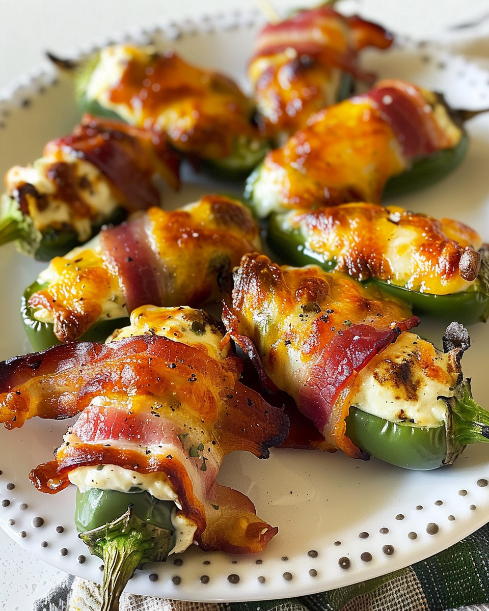 Bacon-wrapped jalapeño poppers are a crowd-pleasing delight that elevate any gathering. Their perfect combination of spicy, cheesy goodness and crispy bacon creates a snack that hits all the right notes of flavor and texture.