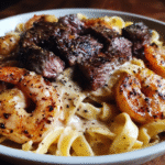 Cajun Shrimp and Steak Alfredo Pasta is a dish that perfectly marries bold flavors with creamy richness. The hearty combination of perfectly sautéed shrimp and succulent steak enveloped in a velvety Alfredo sauce serves as the centerpiece for any dinner table. This dish not only satisfies the palate but also evokes the spirit of Southern cooking.