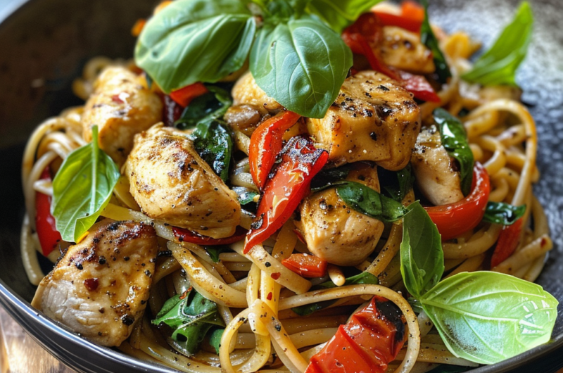 Silky, tangy, and on the table in 30 minutes—this one-pot wonder uses jarred roasted peppers and a balsamic glaze to turn a simple weeknight dinner into something surprisingly elegant.