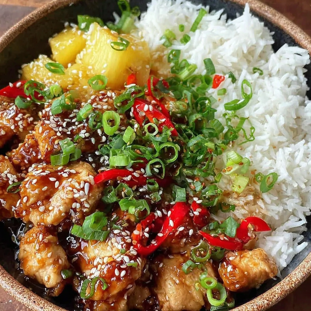 - Serve the chicken mixture over jasmine rice and garnish with green onions.